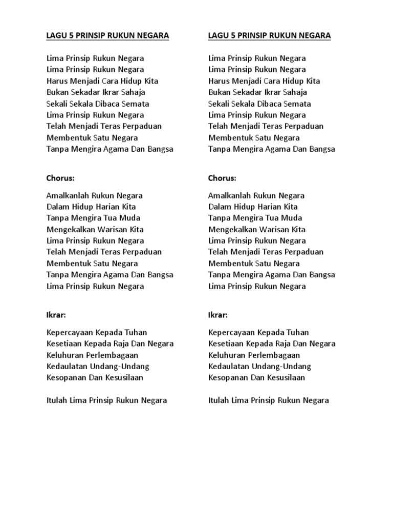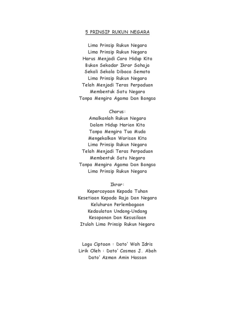Lirik Lagu Lima Prinsip Rukun Negara Pdf